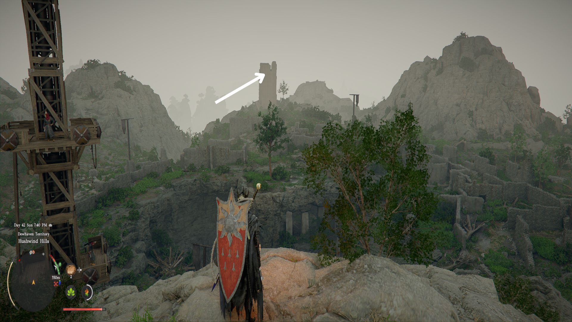 Как только вы окажетесь в этой области, вы сможете увидеть башню с довольно большого расстояния, как показано выше.