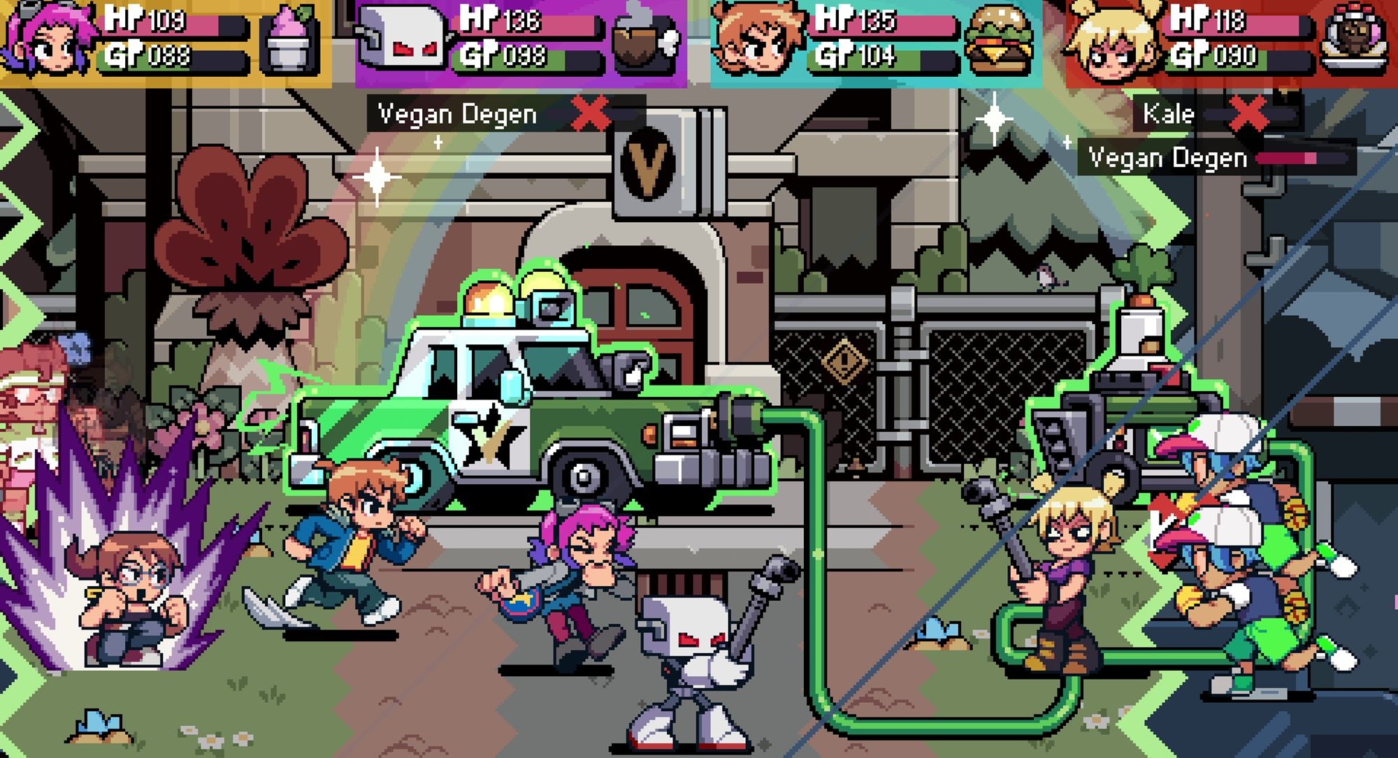 Каждый персонаж, которым вы можете играть, обладает особыми способностями, что делает их всех очень разными. С возвращением Скотта и Рамоны, фокус теперь смещается на новых персонажей: Злых бывших. И играть за них – одно удовольствие! Их навыки соответствуют их личностям и соответствуют тому, как они были изображены в серии Scott Pilgrim.